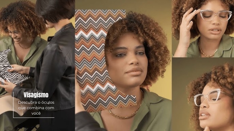 O visagismo propõe uma análise detalhada do formato do rosto, do estilo pessoal e das preferências estéticas, para indicar a armação que realmente harmoniza com a identidade do usuário.